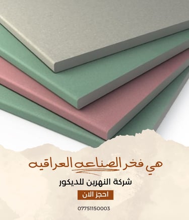 شركة النهرين لتجارة مواد الديكور الداخلي والخارجي والحديد والجبسن بورد تقدم مجموعة واسعة من المنتجات المتميزة التي تلبي جميع احتياجات مشاريع البناء والتشطيبات. نحن متخصصون في توفير حلول متكاملة تشمل مواد عالية الجودة وتصاميم مبتكرة تناسب مختلف الأذواق، من الأفراد الذين يسعون لتحسين منازلهم إلى الشركات التي تنفذ مشاريع ضخمة.